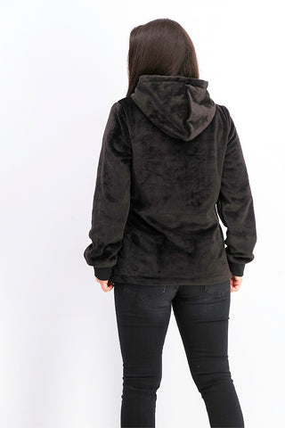 Ideology Women's Faux Fur Quarter Zip Hoodie Black Size X-Small