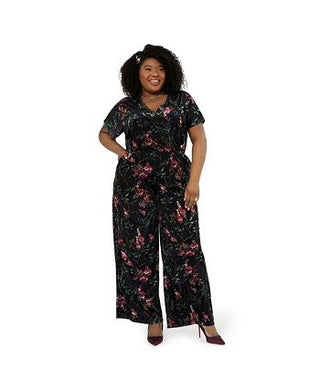 Leota Women's Ruby Floral Stretch Velvet Jumpsuit Black Size 1X