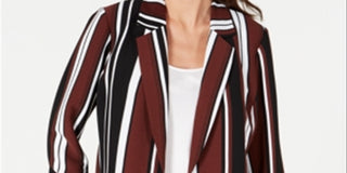 Alfani Women's Striped Ruched Sleeve Topper Jacket -Brown Size L