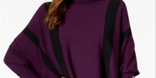 Alfani Women's Striped Poncho Sweater Purple Size Petite Large