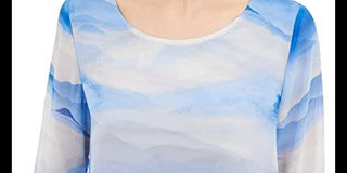 Alfani Women's Striped Scoop Neck Blouse Blue Size X-Large