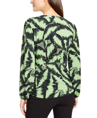 Alfani Women's Surplice Neck Printed Top Green Size Large