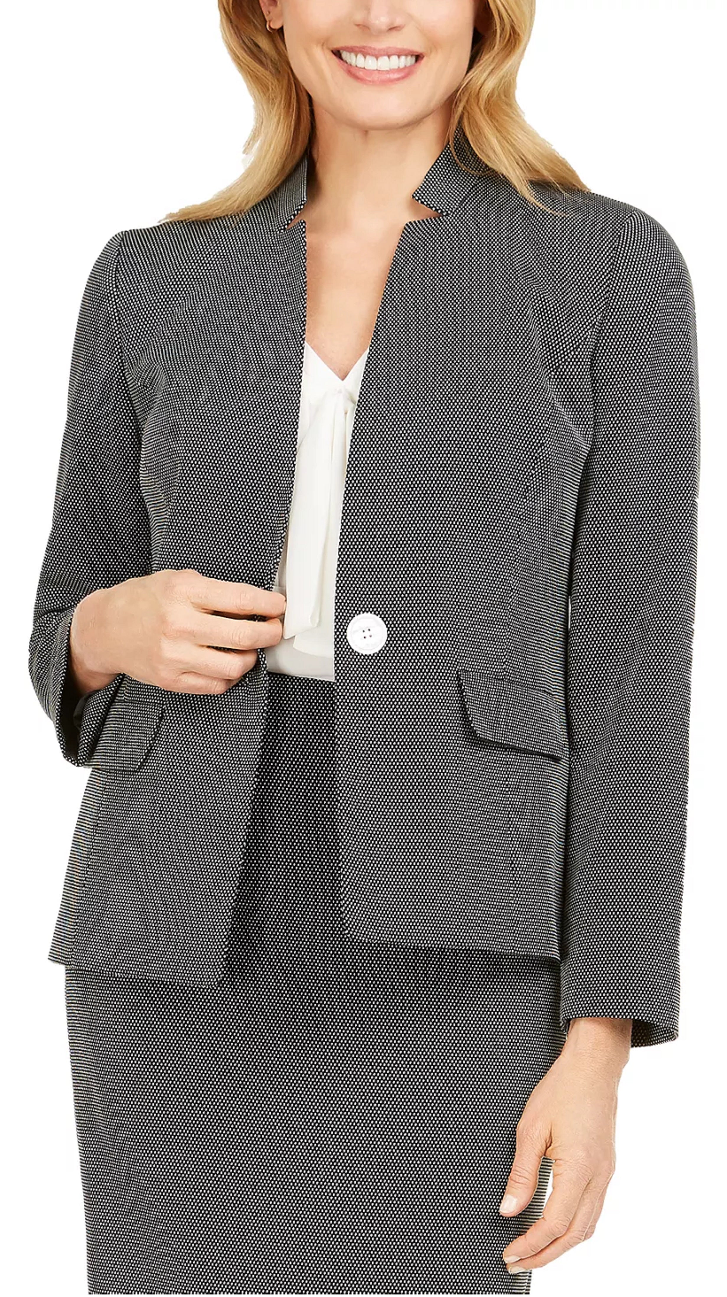 Kasper Women's One Button Pin Dot Jacket Black Size 8
