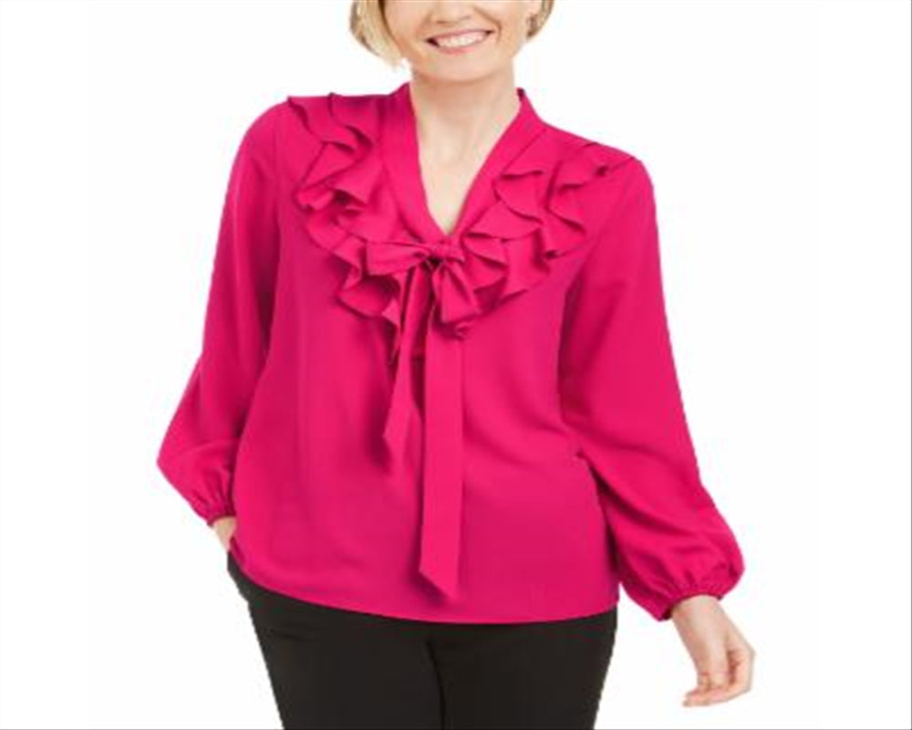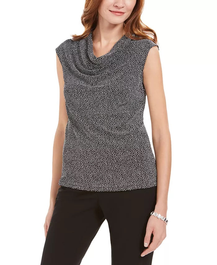 Kasper Women's Perfection Multi Sleeveless Tropical Pleat Neck Blouse Pink Size Large