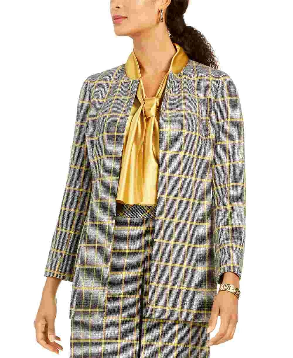 Kasper Women's Open Front Plaid Jacket Yellow Size 4