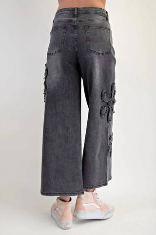Easel - Wide Leg Denim Daisy Stretch Pants