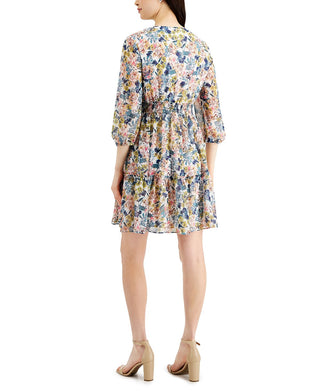 Taylor Women's Ruffled Floral Print Chiffon Smocked A Line Dress White Size 6