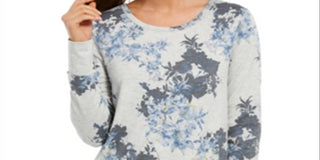Ideology Women's Floral Long Sleeve Crew Neck T-Shirt Sweater Gray Size Large