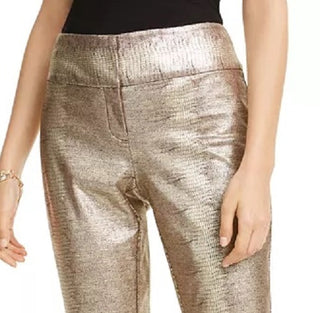 Alfani Women's Tummy-Control Gold Metallic Python-Print Trousers Brown Size 4