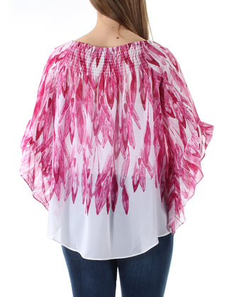 ALFANI Womens Pink Ruched Printed Kimono Sleeve Jewel Neck Top Petites Pink, Size Medium