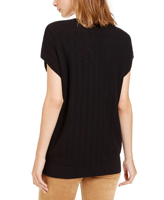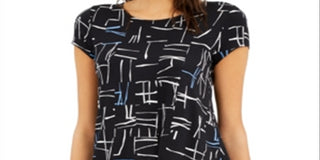 Alfani Womens Printed Short Sleeve Multi Small Knit Top Black Size Small