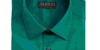Alfatech By Alfani Men's Slim-Fit Performance Stretch Easy-Care Solid Dress Shirt Dark Green Size 32-33