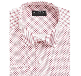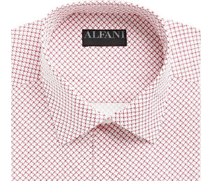 AlfaTech by Alfani Men's Geometric Collared Slim Fit Performance Stretch Dress Shirt White Size 17/17.5- 36/37
