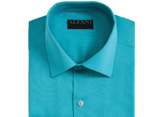 AlfaTech by Alfani Men's Bedford Cord Regular Fit Dress Shirt Turquose Size 15-15.5x34-35