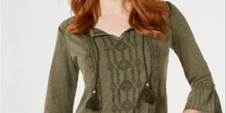 Style & Co Women's Peasant Top Green Size X-Small