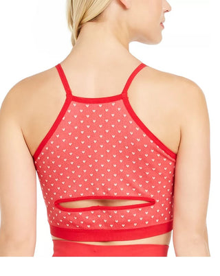 Ideology Women's Heart-Print Seamless Low-Impact Sports Bra Pink Size X-Large