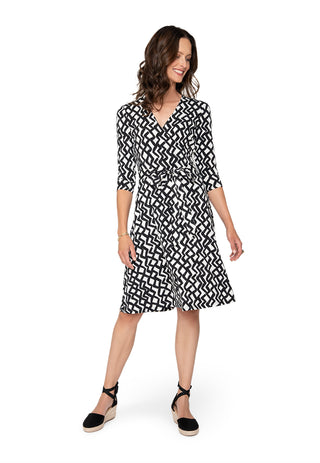 Leota's Women Wrap 3/4 Sleeve Dress Zig Zag Black White