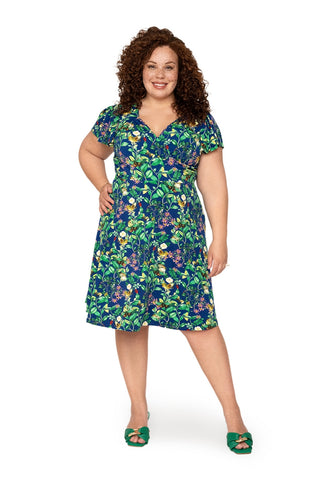 Leota's Curve Women Flutter Sleeve Dress Butterfly Meadow Navy