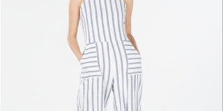 Monteau Women's Striped Cropped Jumpsuit -White Size Petite XL