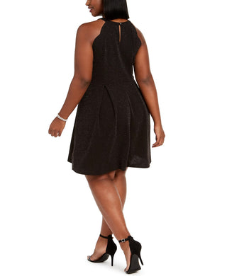 Monteau Women's Trendy Plus Size Glitter Halter Dress Charcoal Size 3X