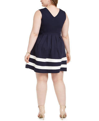 Monteau Women's Trendy Plus Striped Hem Fit & Flare Dress Navy Size XX-Large