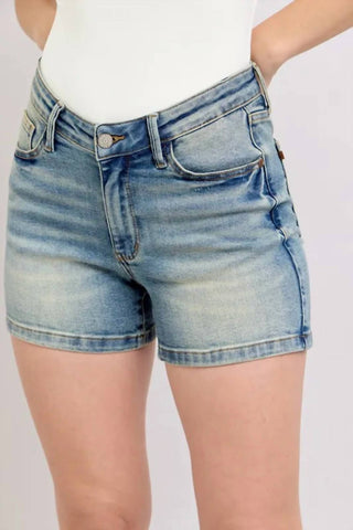 Trendsi - Judy Blue Full Size V-Front Vintage Wash Shorts Plus Size