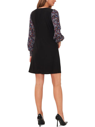 MSK Women's Printed Sleeve Smocked Cuff Shift Dress Black Size Medium