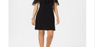 MSK Women's Petite Cold-Shoulder Ruffled Dress Black Size Petite XL