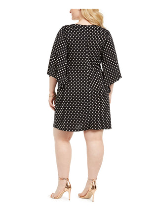 Msk Women's Plus Dot Print Bell Sleeve Dress Black Size 3X