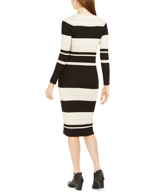 Taylor Women's Striped Midi Sweater Dress Black Size Large