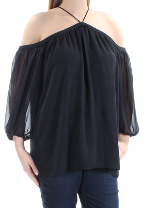1.STATE Women's Off the Shoulder Halter Neck Blouse Black