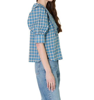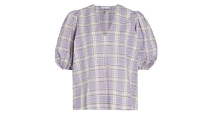 Ganni - SEERSUCKER CHECK OPEN NECK SMOCK TOP