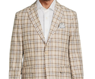 Tallia Men's Slim Fit Multicolor Plaid Blazer White Size 42