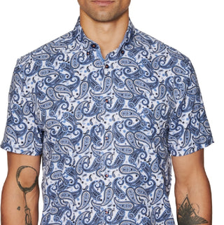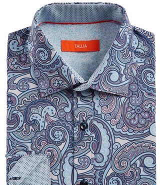 Tallia Men's Slim Fit Non Iron Performance Stretch Paisley Shirt Blue Size Large