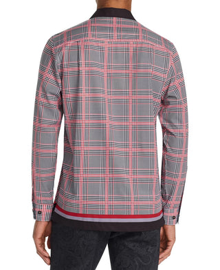 Tallia Men's Slim Fit Performance Stretch Check Long Sleeve Camp Shirt Red Size Medium
