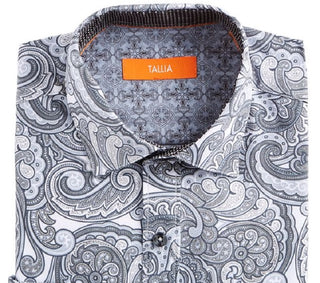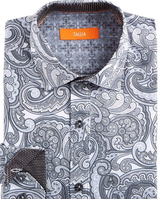 Tallia Men's Slim Fit Performance Stretch Paisley Dress Shirt Gray Size M