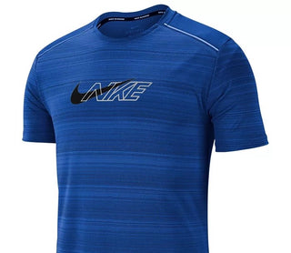 Nike Men's Miler Dri fit Printed Running T-Shirt Blue Size Large