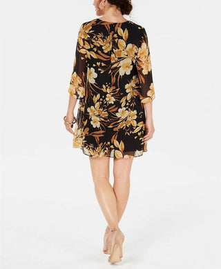Connected Women's Floral Chiffon Keyhole Dress Dark Yellow Size 8 Petite
