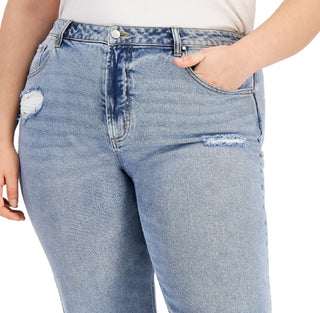 Tinseltown Trendy Women's Two Tone Destructed Mom Jeans Blue Size 18W