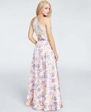 Speechless Juniors' Metallic Floral Brocade Halter Gown Blue Size 9