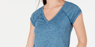 Ideology Women's Teal Short Sleeve V Neck Top Blue Size Medium