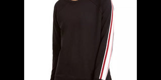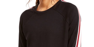 Ideology Women's Varsity Stripe French Terry Sweatshirt Black Size Medium
