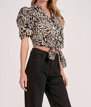 Elan - Short Sleeve Puff Sleeve Tie-front Top