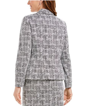 Kasper Women's Metallic Jacquard Wing Collar Jacket Charcoal Size 6