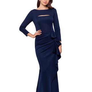 XSCAPE Women's Scuba Cutout Detail Ruffled Fit & Flare Gown Blue Size 16
