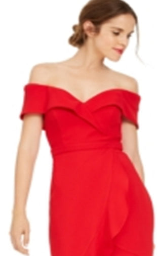 Xscape Women's Short Sleeve Off Shoulder Knee Length Hi Lo Evening Dress Red Size 6