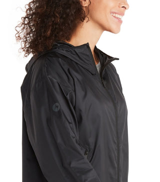 Marmot Women's Zippered Pocketed Water Repellant Droptail Hem Cuffed Sleeve Hooded Jacket Black Size Large