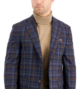 Tallia Men's Wool Slim Fit Pattern Sport Coats Blue Size 44
