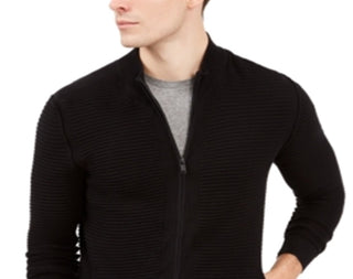 Alfani Men's Sweater Jet Textured Zip Front Cardigan Black Size XX-Large