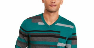 Alfani Men's Textured Striped V-Neck Sweater Green Size XX-Large